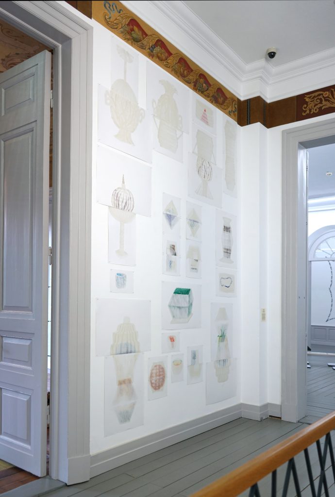 Ich würde meine Knochen dort hinlegen “I would put my borns there”(2023) Oil, dammar harz, paper, Installation